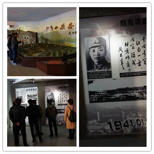 展館大門的左側(cè)墻上,懸掛著一塊“新四軍蘇浙軍區(qū)紀(jì)念館”的牌額。我們就在這有紀(jì)念性標(biāo)志前合影留念。然后大家懷著崇敬的心情依次進(jìn)入館內(nèi)。